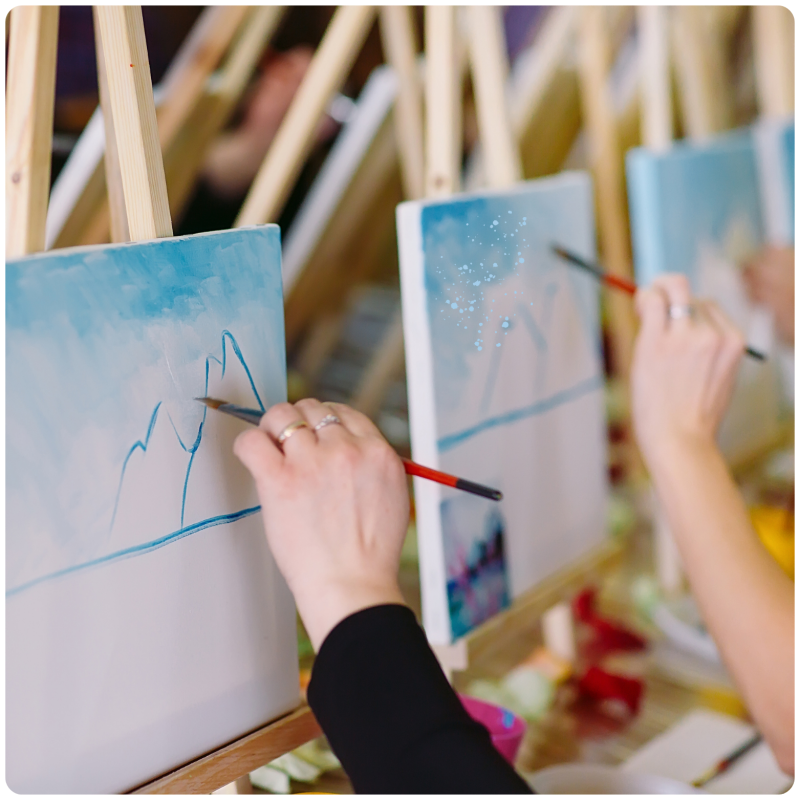 Es spielt keine Rolle, ob du einen Pinsel in der Hand hattest oder schon mal gemalt hast. Hier kannst du gemeinsam kreativ werden und malst mit viel Spaß unter Anleitung Schritt für Schritt dein gewünschtes Kunstwerk. Am Ende nehmt ihr euer eigenes Kunstwerk mit und habt eine bleibende Erinnerung an ein einzigartiges Event.
